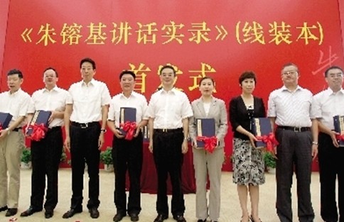 國家圖書館、中國第一歷史檔案館、清華大學圖書館、湖南圖書館、長沙縣、長沙市一中等單位在首發(fā)式上獲贈《朱镕基講話實錄》(線裝本)。