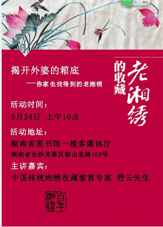 近日,湖南省圖書館迎來了一場名為“你家也找得到的老湘繡”文化沙龍活動,由中國傳統(tǒng)湘繡收藏鑒賞專家野云先生,帶領(lǐng)大家揭開湘繡百年來的神秘面紗,現(xiàn)場有多件精美的湘繡作品讓大家大飽眼福,現(xiàn)場氣氛十分熱烈。活動中,湖南科學(xué)技術(shù)出版社向湖南省圖書館贈送了《老湘繡的收藏》,讀者們可以在圖書館閱覽該書的精彩內(nèi)容。