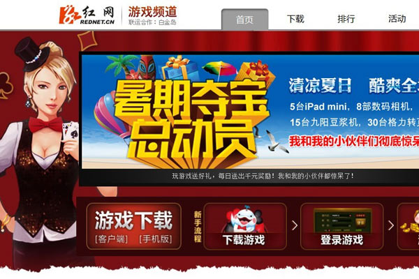 紅網(wǎng)游戲頻道秉承“健康游戲、健康生活”的經(jīng)營理念,著重挖掘極具湖湘文化特色的地方性游戲和風(fēng)靡全國的網(wǎng)頁游戲。頻道將開設(shè)各種類型的線上比賽和線上活動,全天24小時不間斷推出。為廣大玩家提供一個比拼技藝、交流情感的平臺。
