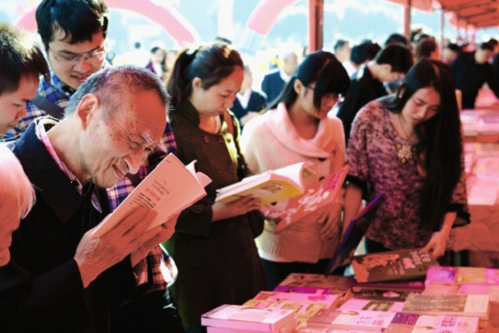 中南傳媒旗下各出版社在賀龍體育中心東廣場搭建的圖書展示臺吸引了許多讀者。啟動儀式剛結(jié)束,許又聲一行來到展臺前,與書迷們一起分享讀書的快樂。